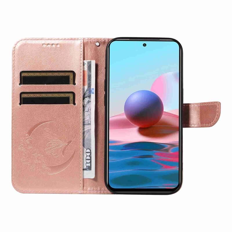 Θήκη τηλεφώνου από δέρμα με ανάγλυφο σχέδιο πεταλούδας Swallowtail για Xiaomi Rose Goldmi Note 10 4G / 10S (Κόκκινο)