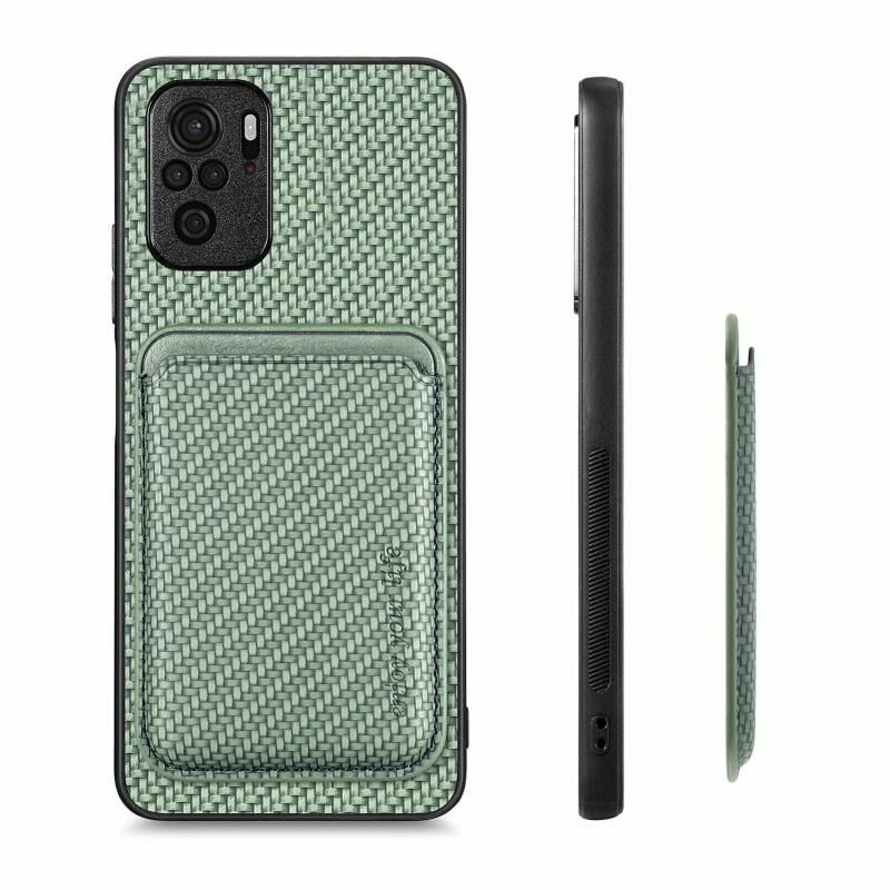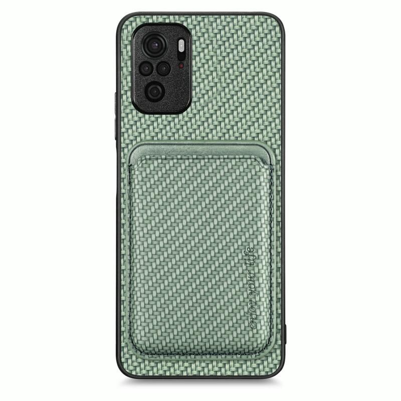 Θήκη τηλεφώνου μαγνητική με κάρτες από δέρμα ανθρακονήματος για Xiaomi Redmi Note 10 4G (Μαύρο)