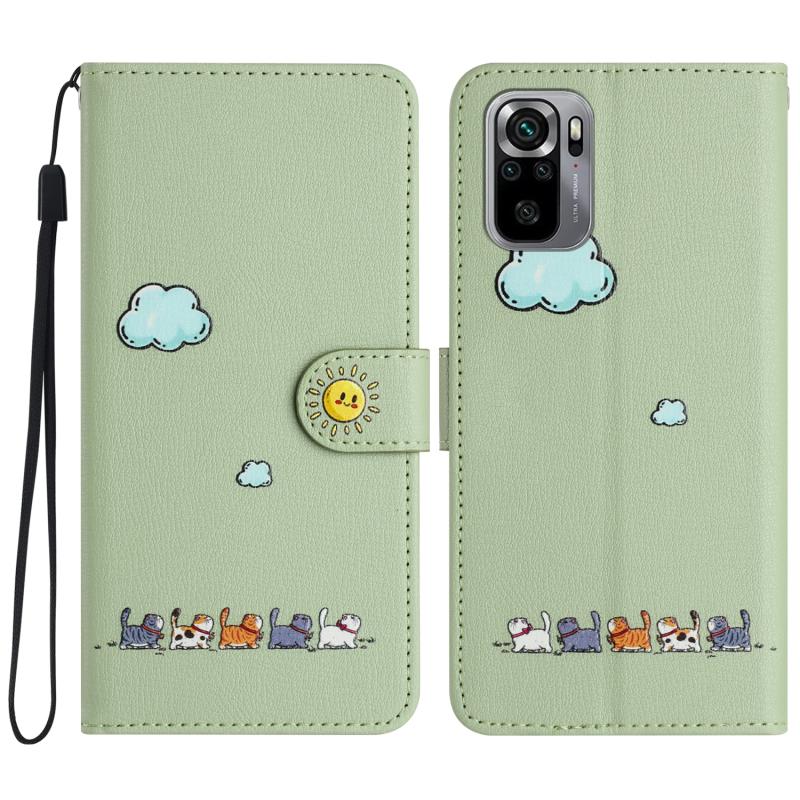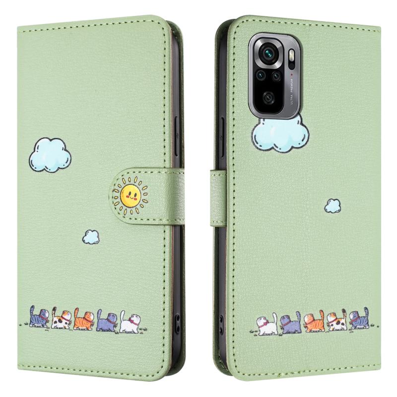 For Xiaomi Redmi Note 10 4G Cartoon Cats Leather Phone Case(Green)