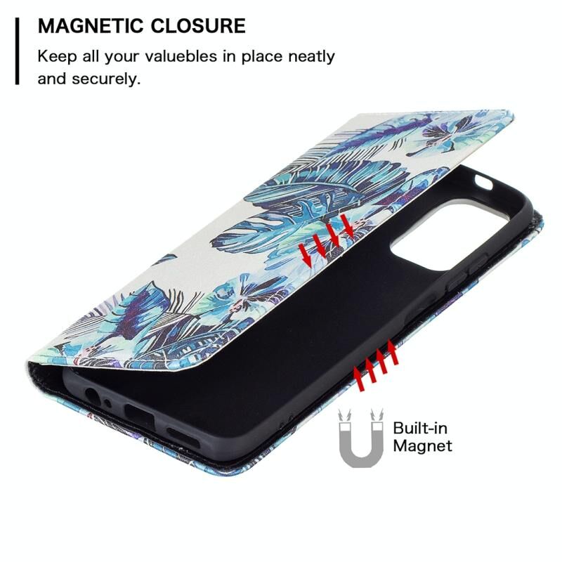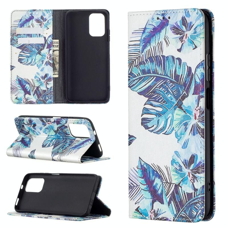 Για Xiaomi Redmi Note 10 4G Θήκη Δερμάτινη PU με Μαγνητικό Κλείσιμο, Οριζόντια, με Σχέδια, Αόρατη, με Θήκη & Θήκες Καρτών & Πορτοφόλι (Μπλε Φύλλα)