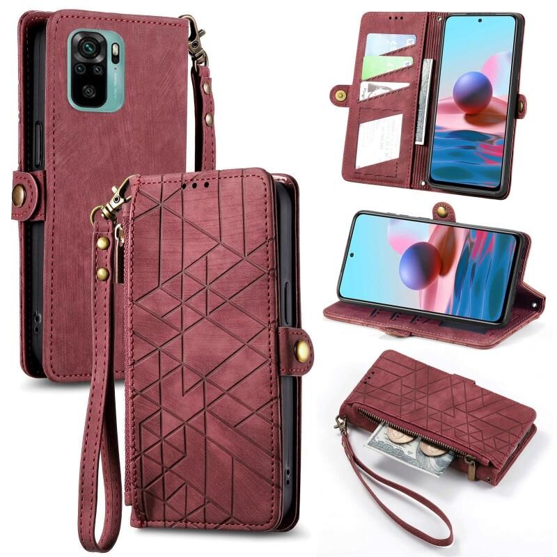 Για Xiaomi Redmi Note 10 4G γεωμετρική φερμουάρ πορτοφόλι πλευρά πόρπη δερμάτινη θήκη τηλεφώνου (κόκκινο)