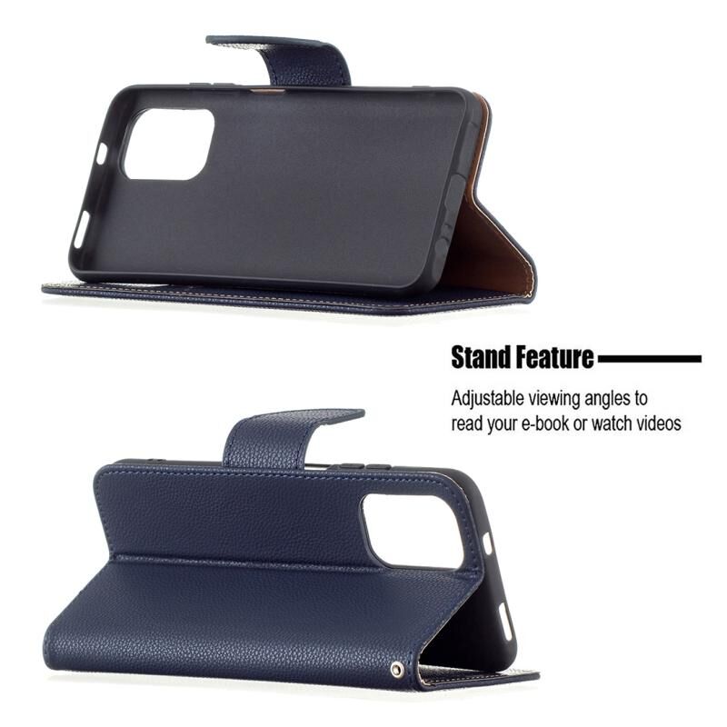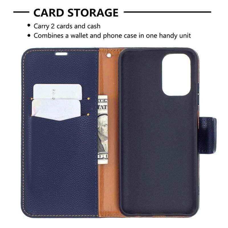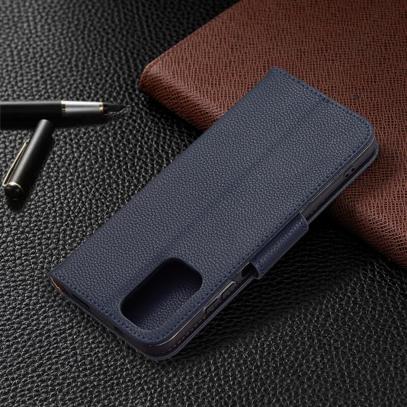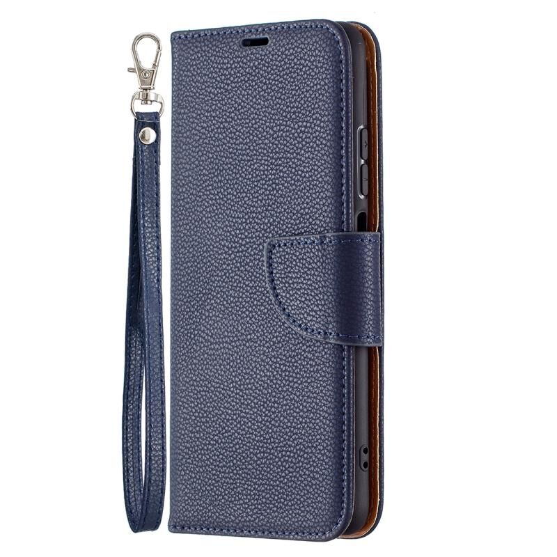 Για Xiaomi Redmi Note 10 4G Litchi υφή καθαρό χρώμα οριζόντια Flip δερμάτινη θήκη με θήκη & υποδοχές για κάρτες & πορτοφόλι & κορδόνι (Σκούρο μπλε)