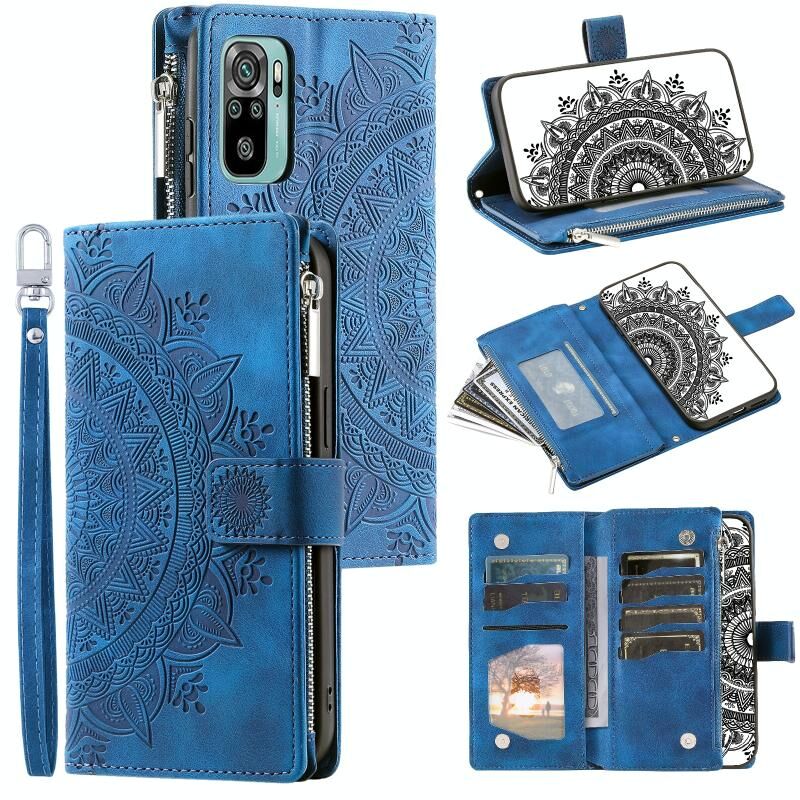 Για Xiaomi Redmi Note 10 4G Multi-Card Totem φερμουάρ δερμάτινη θήκη τηλεφώνου (Μπλε)