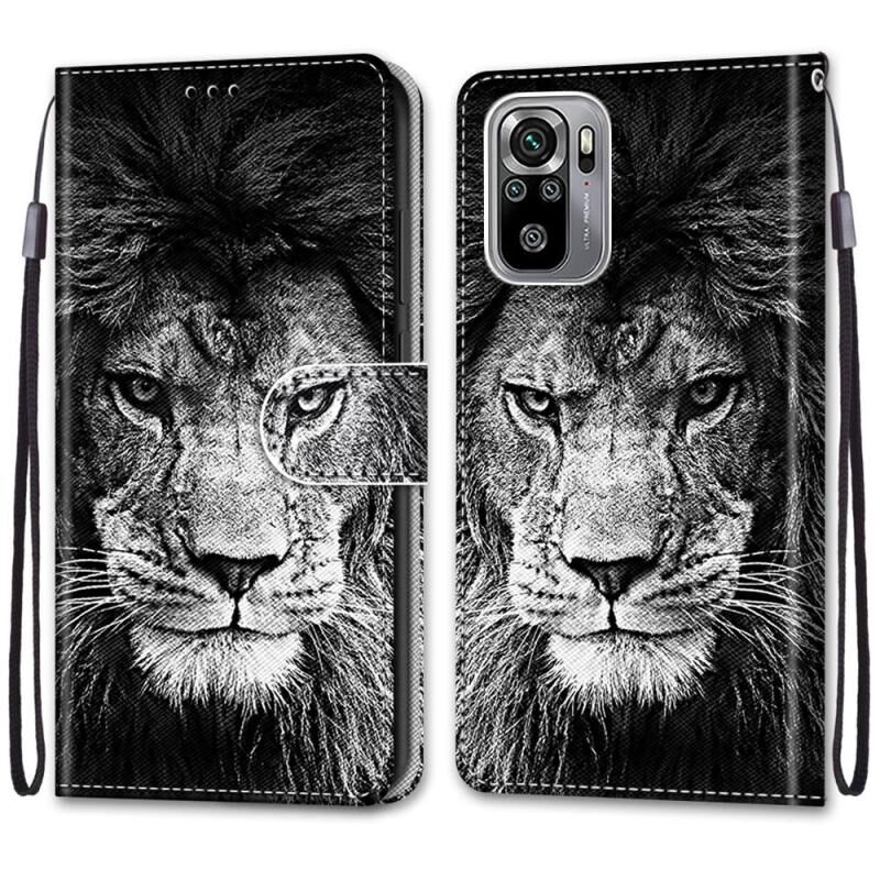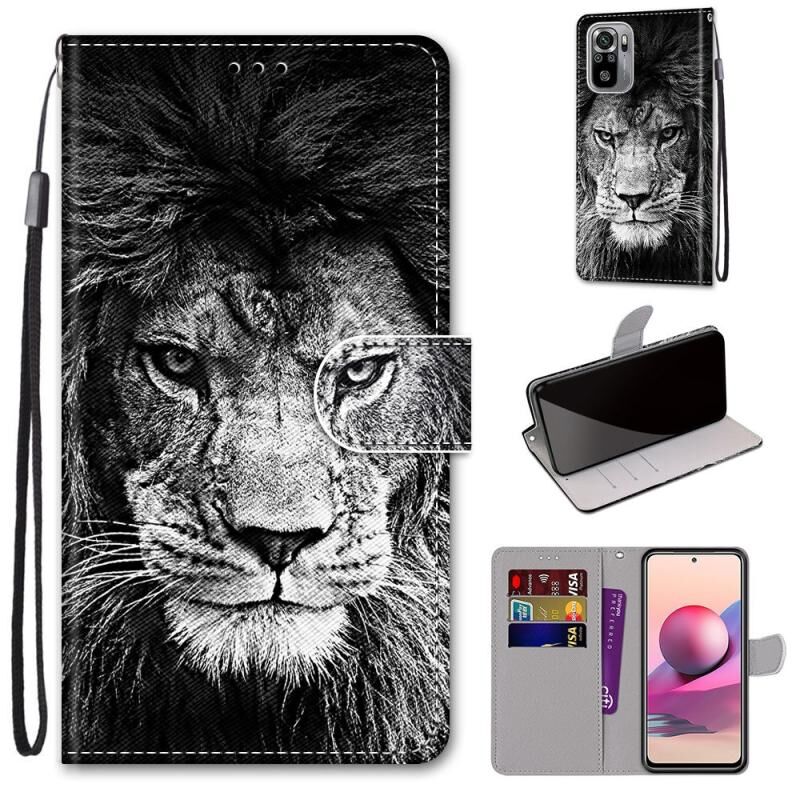 For Xiaomi Redmi Note 10 4G / Note 10S Coloured Drawing Cross Texture Horizontal Flip PU Leather Case with Holder & Card Slots & Wallet & Lanyard(Black White Lion Head)