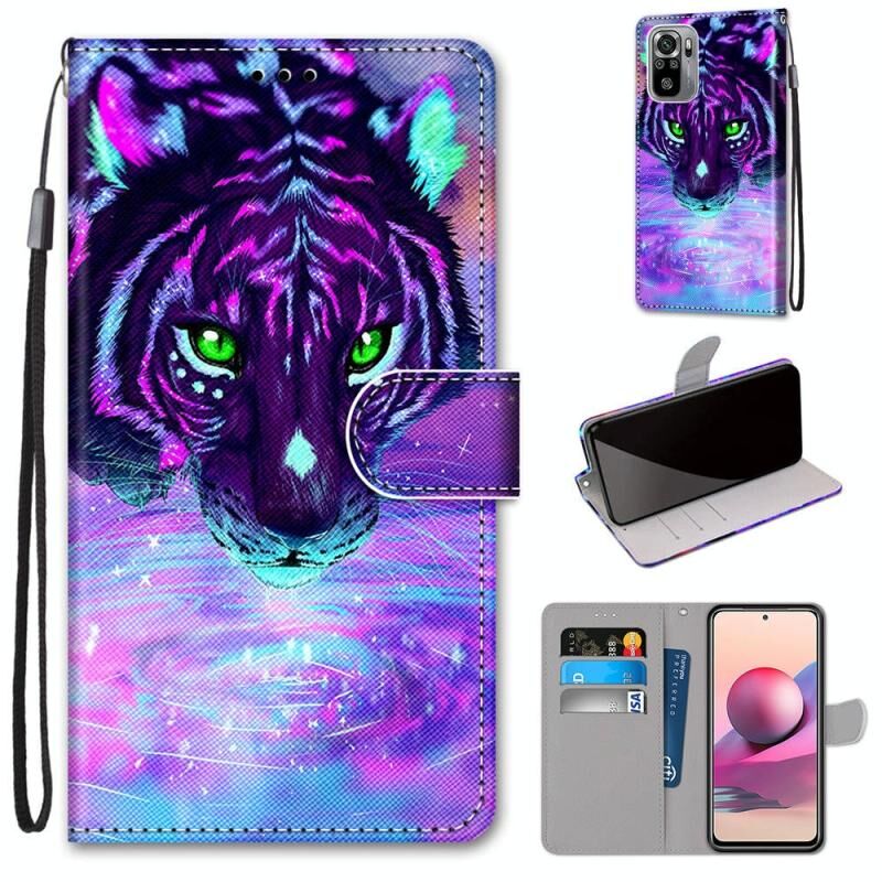 For Xiaomi Redmi Note 10 4G / Note 10s Coloured Drawing Cross Texture Horizontal Flip PU Leather Case with Holder & Card Slots & Wallet & Lanyard(Tiger Drinking Water)