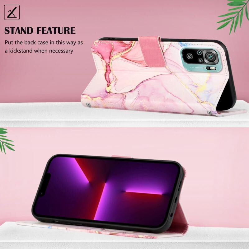 Για Xiaomi Redmi Note 10 4G / Note 10s Θήκη τηλεφώνου από δέρμα με σχέδιο μαρμάρου και πτυσσόμενο καπάκι (Ροζ Μωβ Χρυσό LS001)