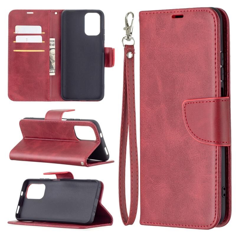 Για Xiaomi Redmi Σημείωση 10 4G / Σημείωση 10S Ρετρό Lambskin υφή καθαρό χρώμα οριζόντια Flip PU δέρμα υπόθεση με θήκη & υποδοχές καρτών & πορτοφόλι & Lanyard (Κόκκινο)