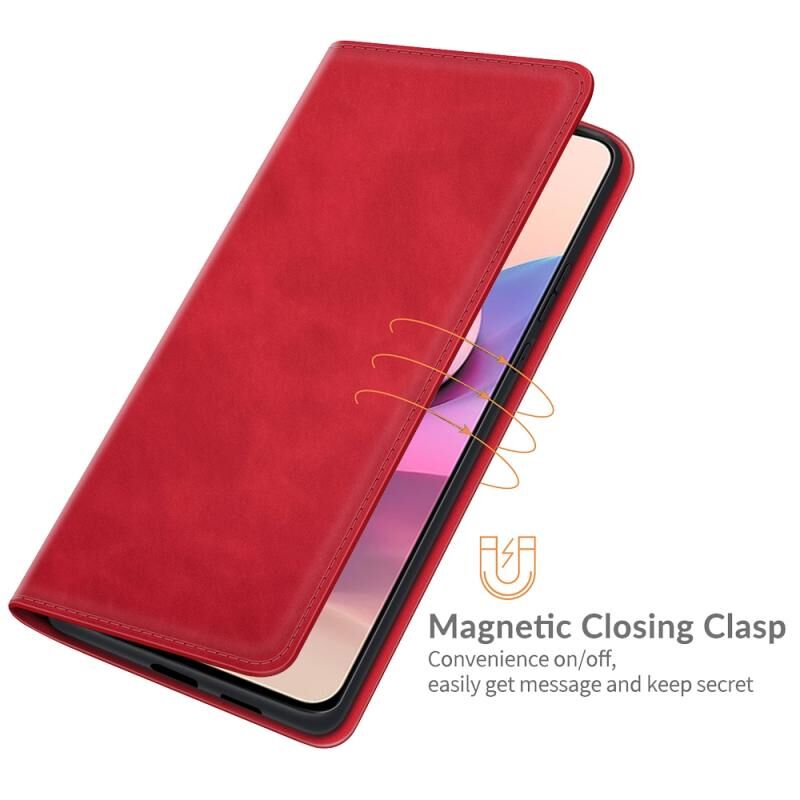 Για Xiaomi Redmi Note 10 4G / Note 10S Retro-skin Business Μαγνητική δερμάτινη θήκη αναρρόφησης με θήκη & υποδοχές καρτών & πορτοφόλι (κόκκινο)