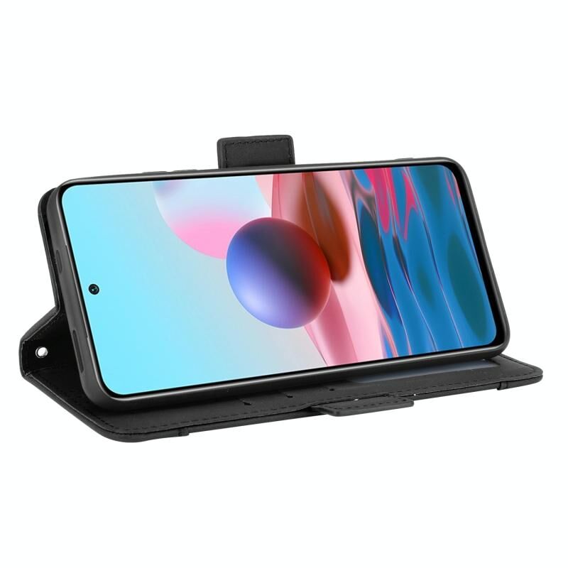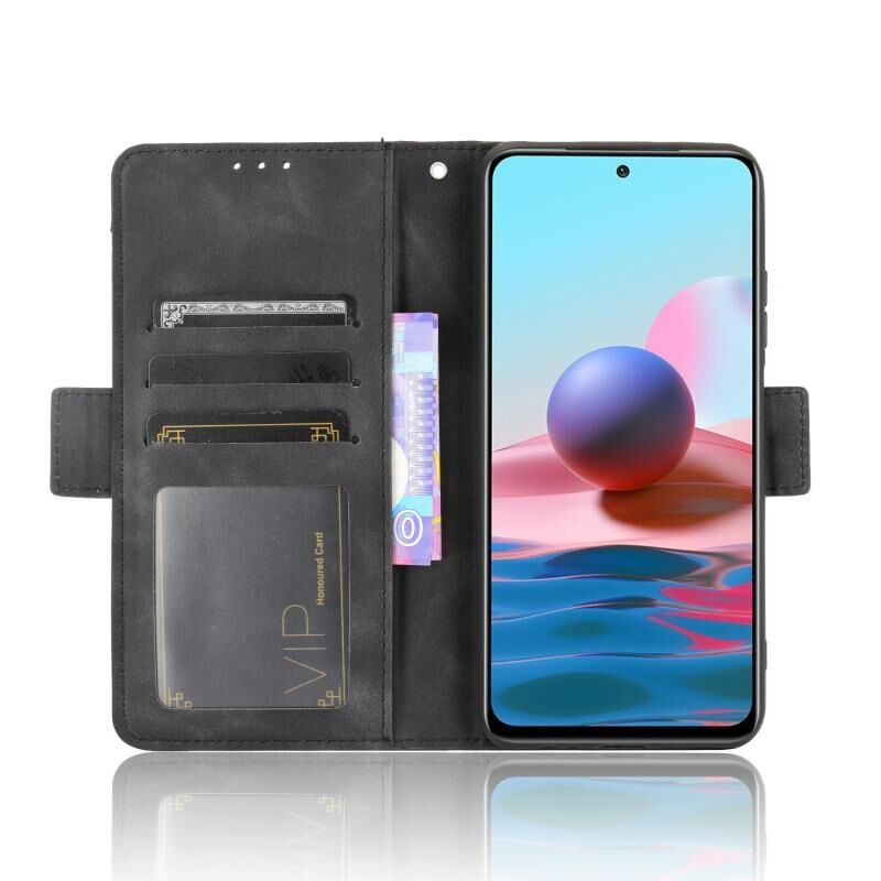Για Xiaomi Redmi Σημείωση 10 4G / Σημείωση 10S δέρμα αίσθηση μοσχάρι μοτίβο οριζόντια Flip δερμάτινη θήκη με κάτοχο & υποδοχές καρτών & πλαίσιο φωτογραφιών (μαύρο)