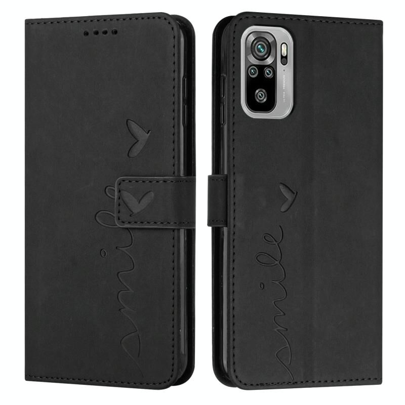 Θήκη δερμάτινη με σχέδιο καρδιάς για Xiaomi Redmi Note 10 4G/Note 10s (Μαύρο)