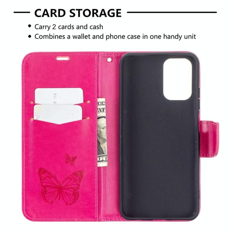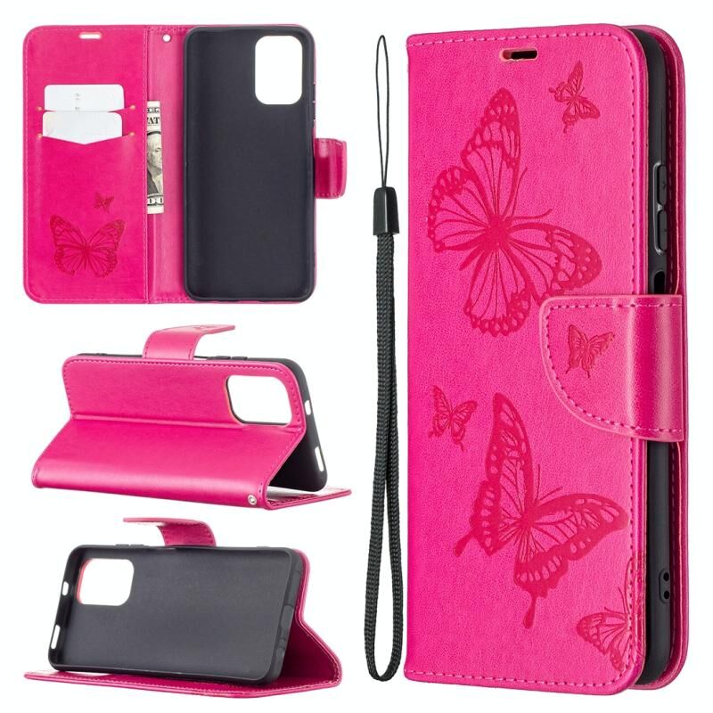 Για Xiaomi Redmi Note 10 4G/Note 10s Δερμάτινη θήκη οριζόντιας αναδίπλωσης με ανάγλυφο σχέδιο δύο πεταλούδων, με βάση στήριξης & υποδοχή κάρτας & πορτοφόλι & κορδόνι (Χρυσό ροζ)