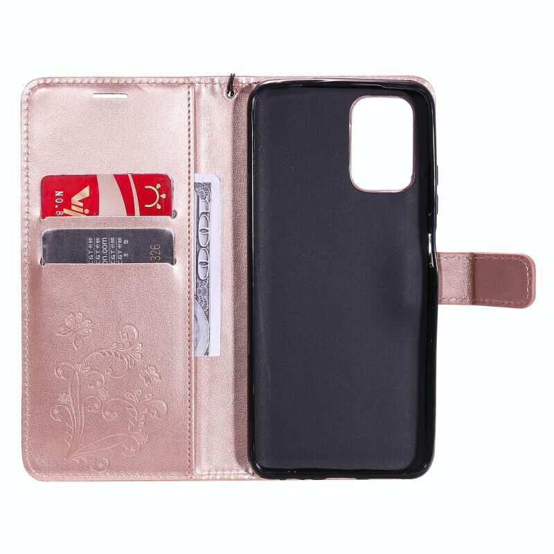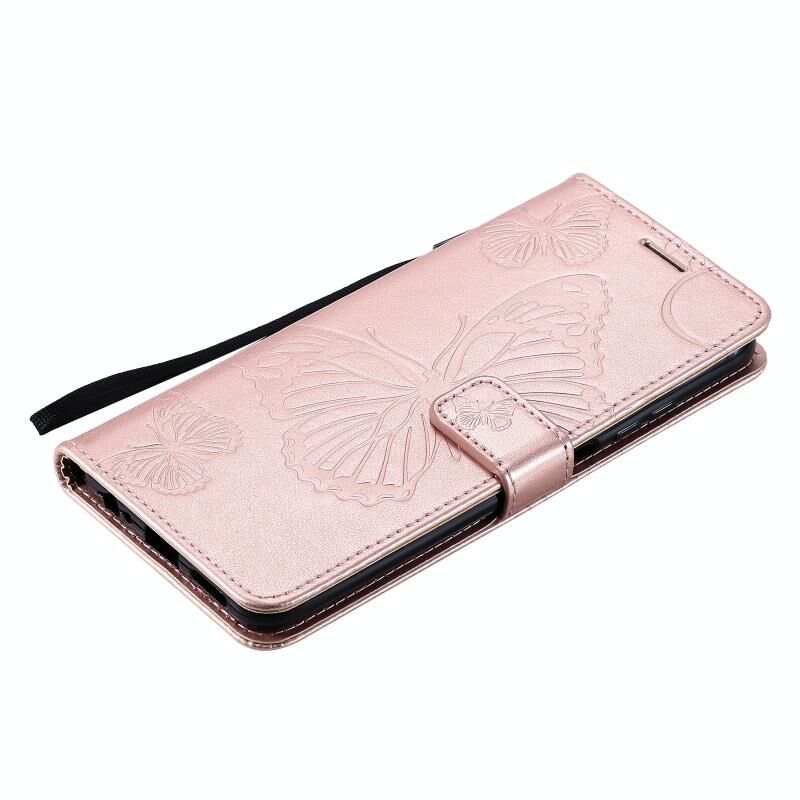 Για Xiaomi Redmi Note 10 4G Πιεσμένη εκτύπωση πεταλούδα μοτίβο οριζόντια Flip PU δέρμα υπόθεση με κάτοχο & υποδοχές καρτών & πορτοφόλι & Lanyard (Ροζ χρυσός)