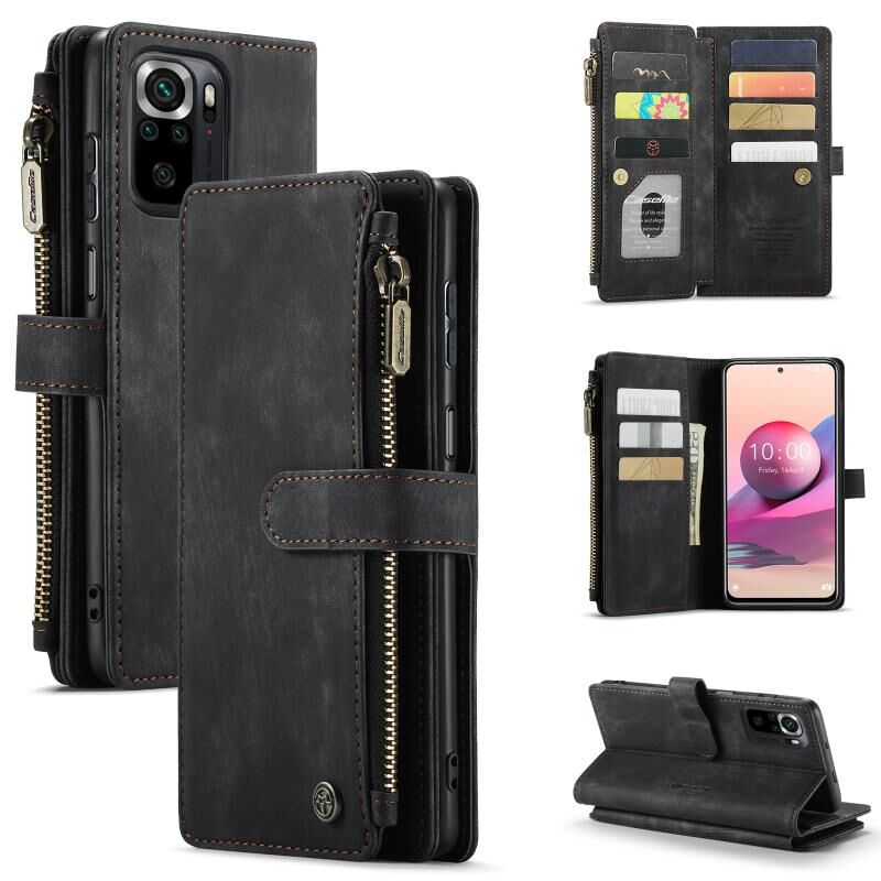 Για Xiaomi Redmi Note 10 4G / Redmi Note 10S CaseMe-C30 Πολυλειτουργική Οριζόντια Θήκη PU + TPU (Μαύρο) (Μαύρο)