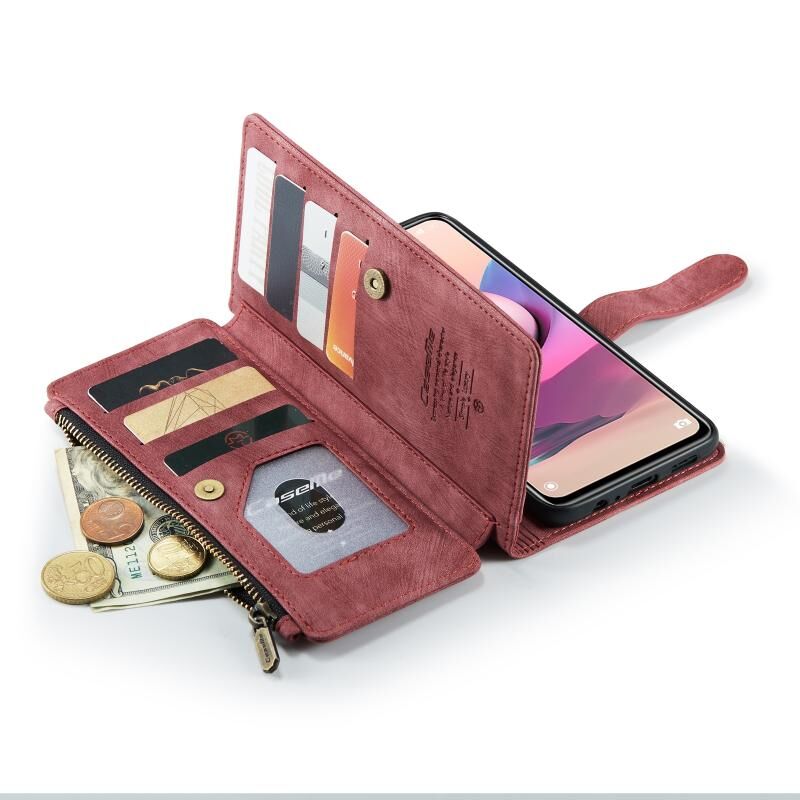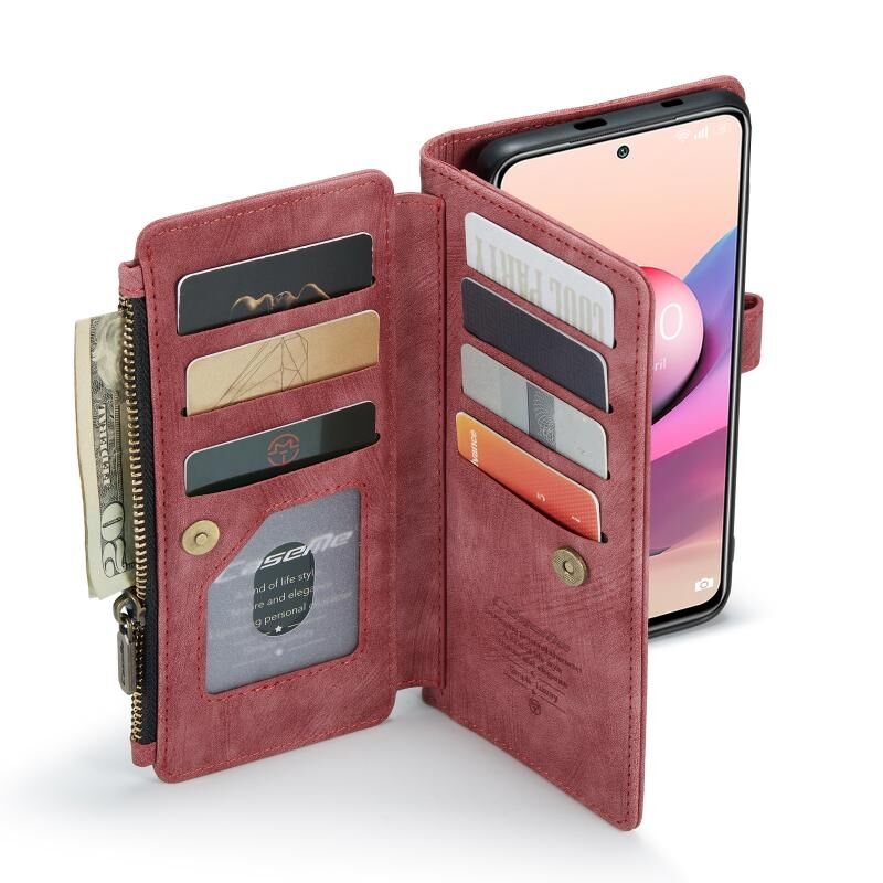 Για Xiaomi Redmi Note 10 4G / Redmi Note 10S CaseMe-C30 Πολυλειτουργική Οριζόντια Θήκη PU + TPU (Μαύρο) (Κόκκινο)