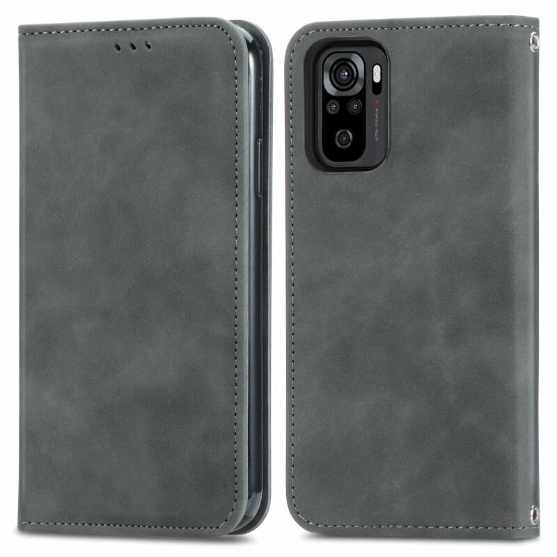 Για Xiaomi Redmi Note 10 4G Retro Skin Feel Business Μαγνητική οριζόντια Flip δερμάτινη θήκη με υποδοχές για κάρτες & πορτοφόλι & πλαίσιο φωτογραφιών (γκρι)