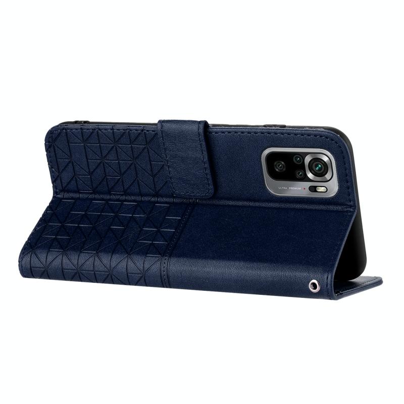 Θήκη δερμάτινη με κορδόνι για Xiaomi Redmi Note 10 4G με ρόμβους (Μπλε)