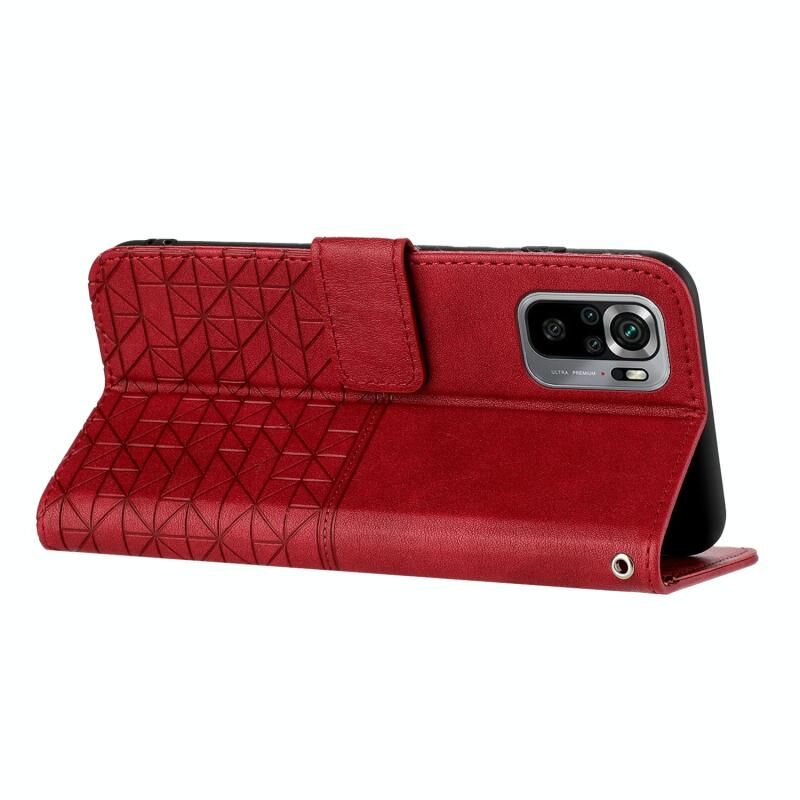 Θήκη δερμάτινη με κορδόνι για Xiaomi Redmi Note 10 4G με ρόμβους (Κόκκινο)