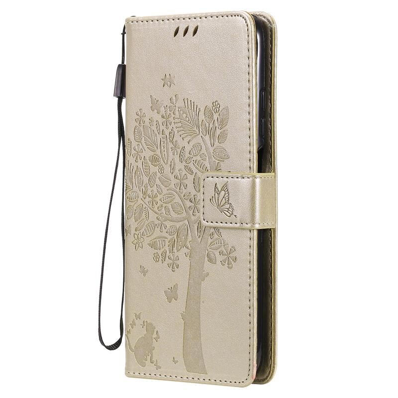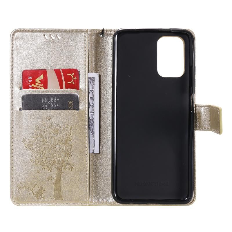 Για Xiaomi Redmi Note 10 4G Θήκη Δερμάτινη PU με Οριζόντιο Άνοιγμα, με σχέδιο Δέντρου & Γάτας, με εκτύπωση, με βάση στήριξης, θήκες καρτών, πορτοφόλι & λουρί (Πράσινο)