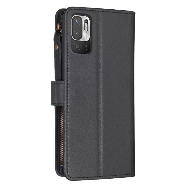 Για Xiaomi Redmi Σημείωση 10 5G 9 Card Slots φερμουάρ πορτοφόλι δέρμα Flip υπόθεση τηλεφώνου (μαύρο)