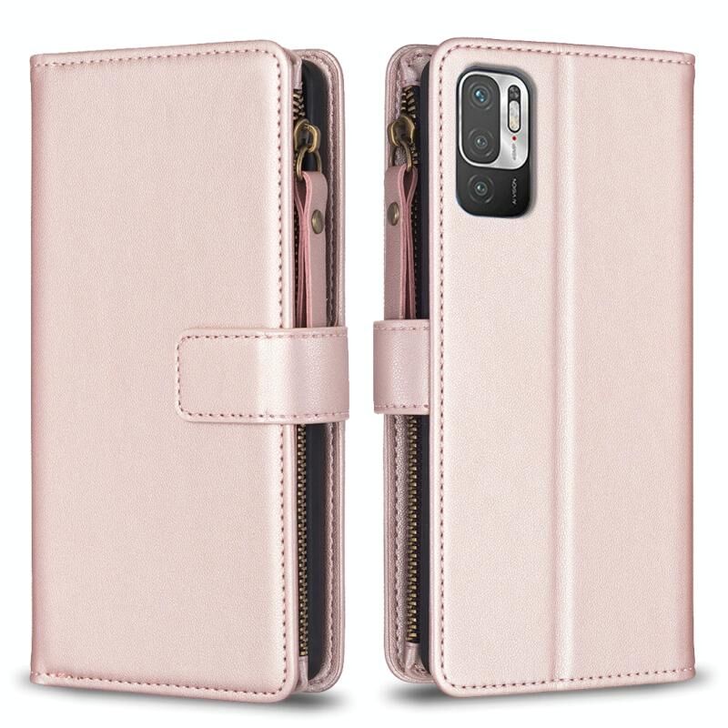 Για Xiaomi Redmi Σημείωση 10 5G 9 Card Slots φερμουάρ πορτοφόλι δέρμα Flip υπόθεση τηλεφώνου (Rose Gold)