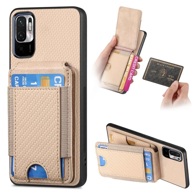 Για Xiaomi Redmi Note 10 5G Carbon Fiber Κάθετη Flip Wallet Stand υπόθεση τηλεφώνου (χακί)