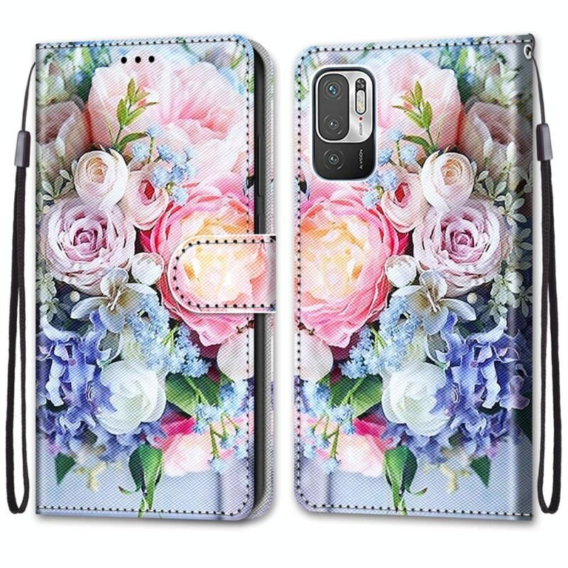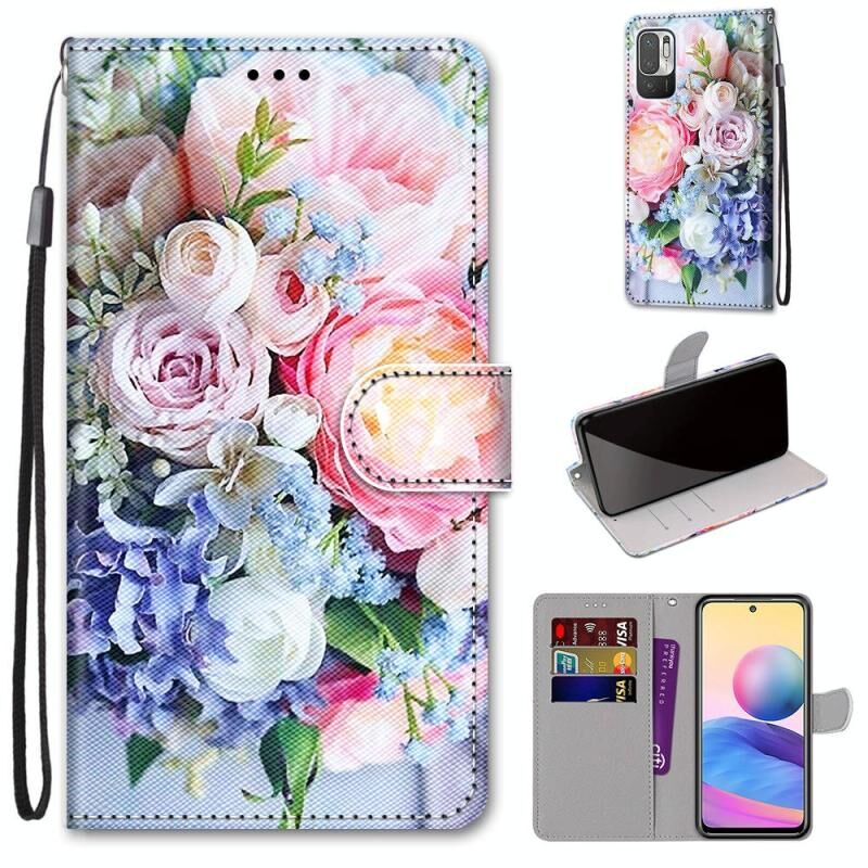 Για Xiaomi Redmi Note 10 5G Θήκη από Δέρμα PU με Σχέδιο, Υφή Σταυρού, Οριζόντια Αναδίπλωση, με Στήριξη & Θήκες Καρτών & Πορτοφόλι & Λουρί (Ροζ Λουλούδι, Γέφυρα Πύργου)