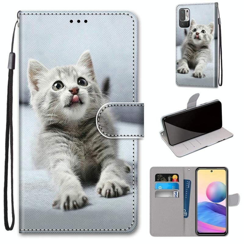 Για Xiaomi Redmi Note 10 5G Θήκη από Δέρμα PU με Σχέδιο, Υφή Σταυρού, Οριζόντια Αναδίπλωση, με Στήριξη & Θήκες Καρτών & Πορτοφόλι & Λουρί (Μικρή γκρι γάτα)