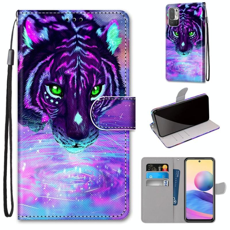 Θήκη για Xiaomi Redmi Note 10 5G με πολύχρωμο σχέδιο, υφή σταυρού, οριζόντια αναδίπλωση από δερματίνη PU με βάση στήριξης & θήκες για κάρτες & πορτοφόλι & κορδόνι (Τίγρης που πίνει νερό)