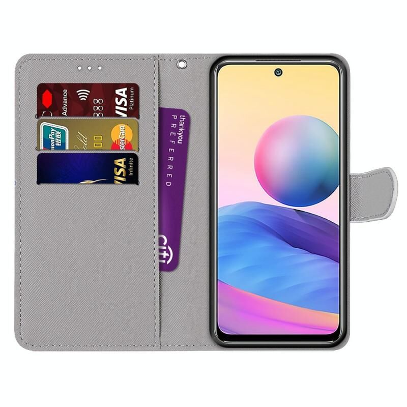 Για Xiaomi Redmi Note 10 5G Θήκη από Δέρμα PU με Σχέδιο, Υφή Σταυρού, Οριζόντια Αναδίπλωση, με Στήριξη & Θήκες Καρτών & Πορτοφόλι & Λουρί (Ροζ Λουλούδι, Γέφυρα Πύργου)