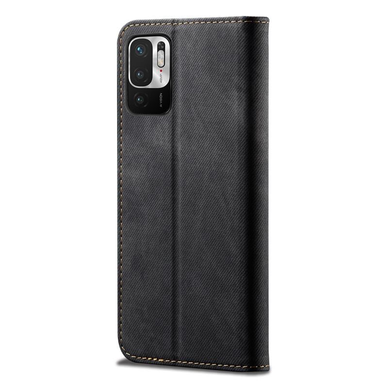 Για Xiaomi Redmi Note 10 5G Denim Texture Casual Style Οριζόντια Flip δερμάτινη θήκη με θήκη & υποδοχές για κάρτες & πορτοφόλι (μαύρο)