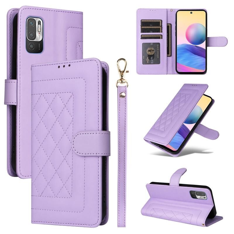 Για Xiaomi Redmi Note 10 5G Diamond Lattice δέρμα Flip υπόθεση τηλεφώνου (ανοιχτό μοβ)