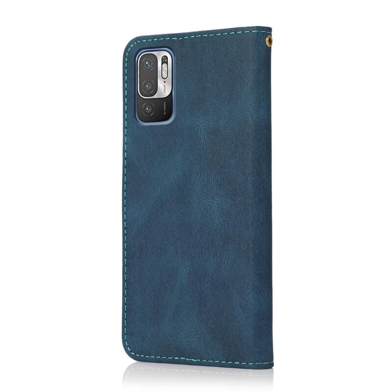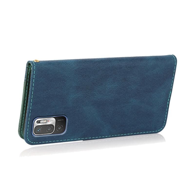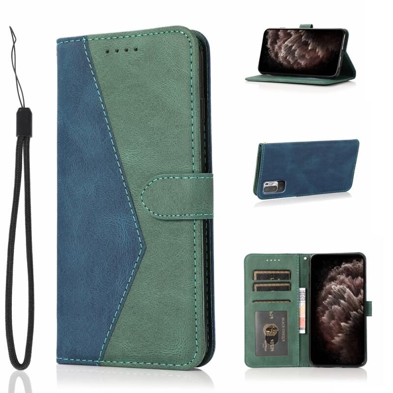 Για Xiaomi Redmi Σημείωση 10 5G Διπλό χρώμα ραφή δέρμα τηλέφωνο υπόθεση (Μπλε πράσινο)
