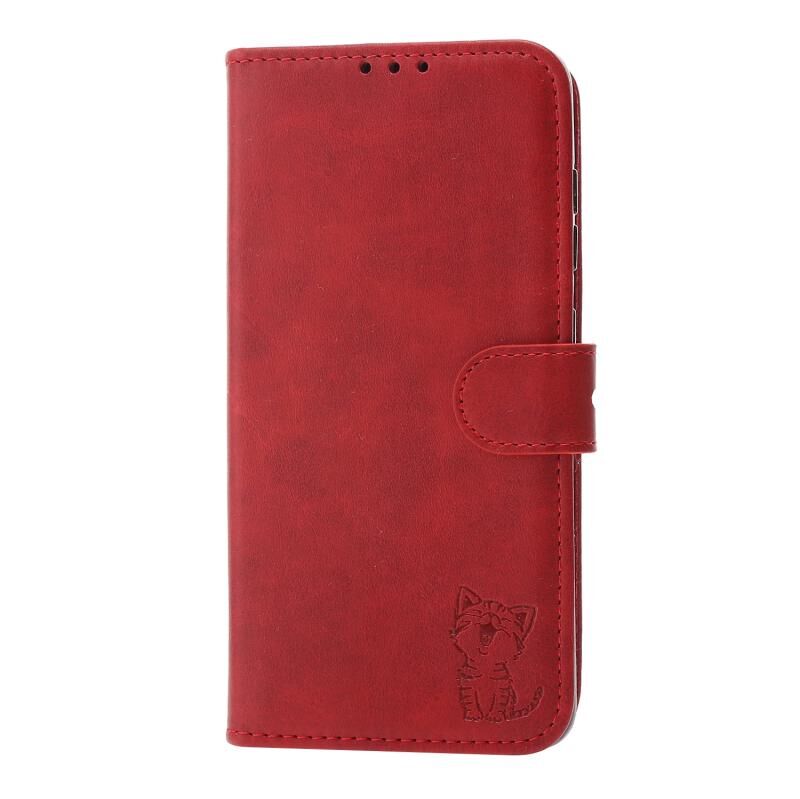 Για Xiaomi Redmi Note 10 5G ανάγλυφο Happy Cat μοτίβο οριζόντια Flip δερμάτινη θήκη με κάτοχο & υποδοχές για κάρτες & πορτοφόλι (Κόκκινο)