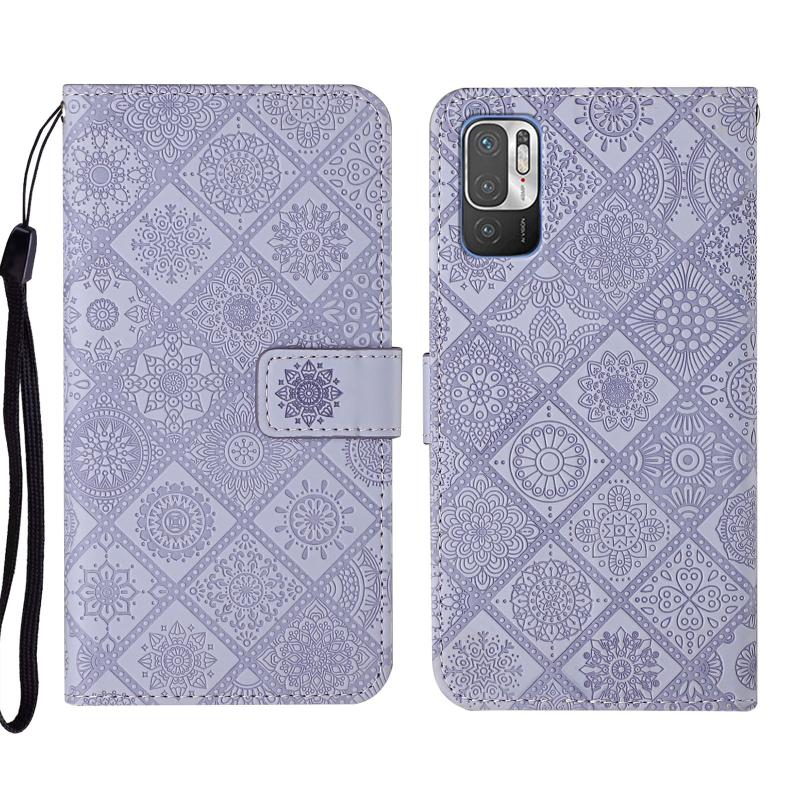 Θήκη τηλεφώνου δερμάτινη με ανάγλυφο σχέδιο εθνοτικού στυλ για Xiaomi Redmi Note 10 5G (Μωβ)