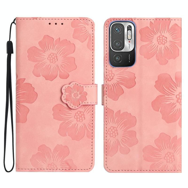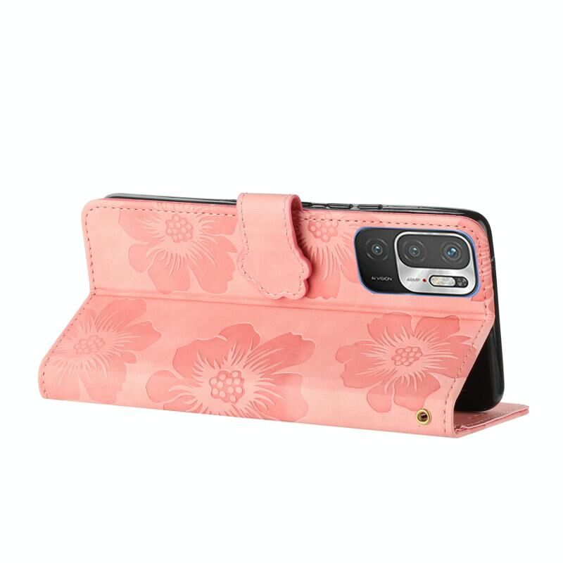 Για Xiaomi Redmi Σημείωση 10 5G λουλούδι ανάγλυφο μοτίβο δερμάτινη θήκη τηλεφώνου (ροζ)