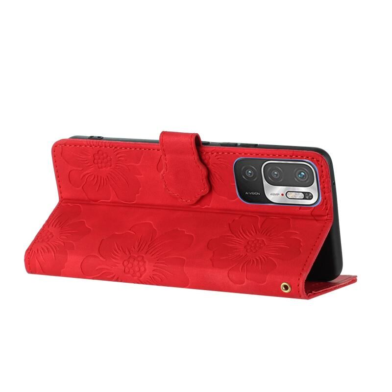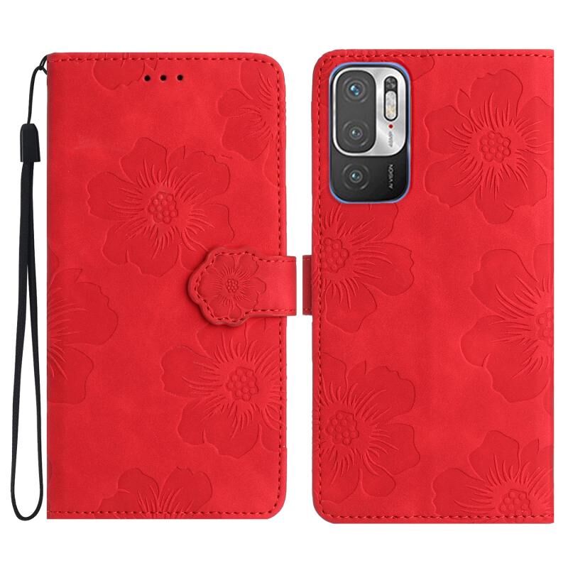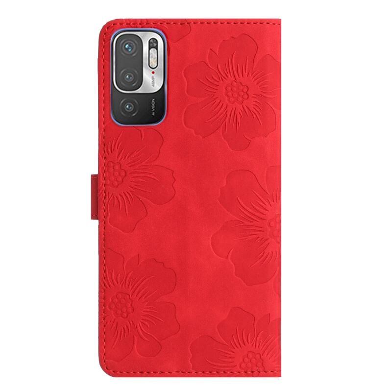 Για Xiaomi Redmi Σημείωση 10 5G λουλούδι ανάγλυφο μοτίβο δερμάτινη θήκη τηλεφώνου (κόκκινο)