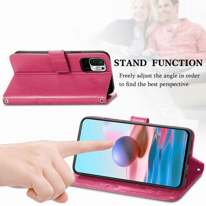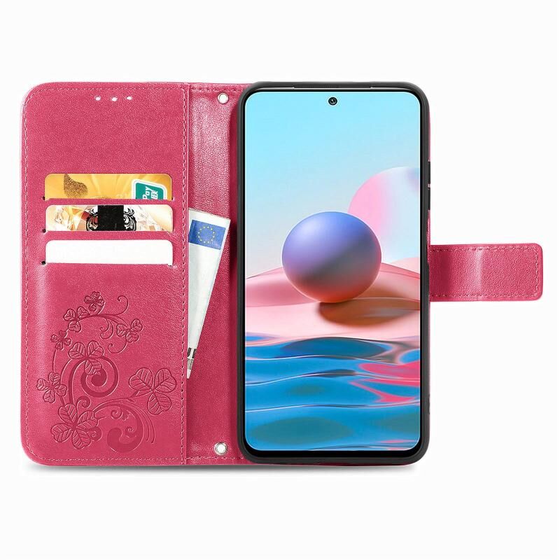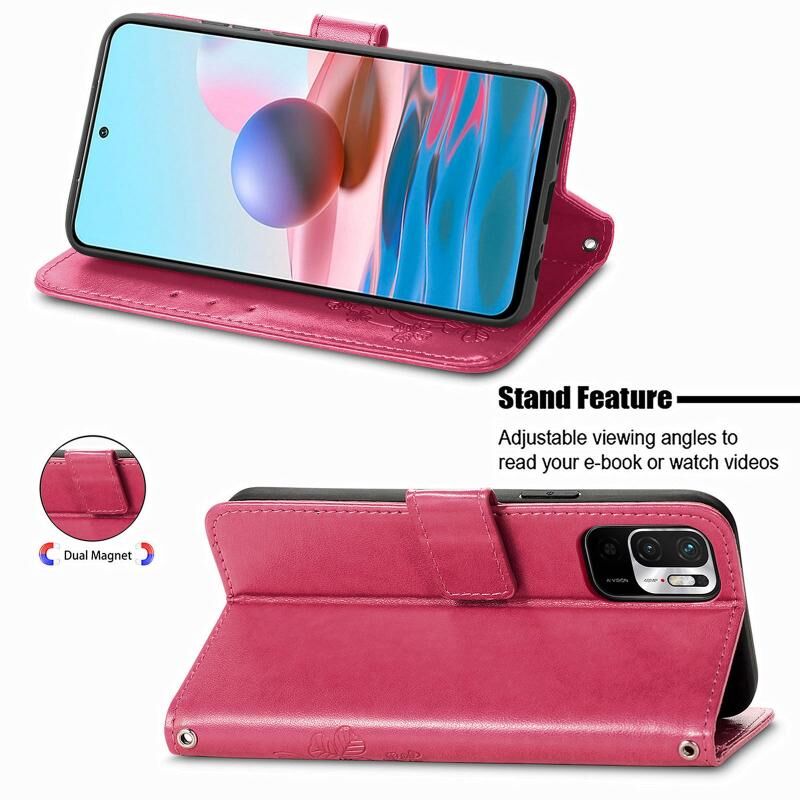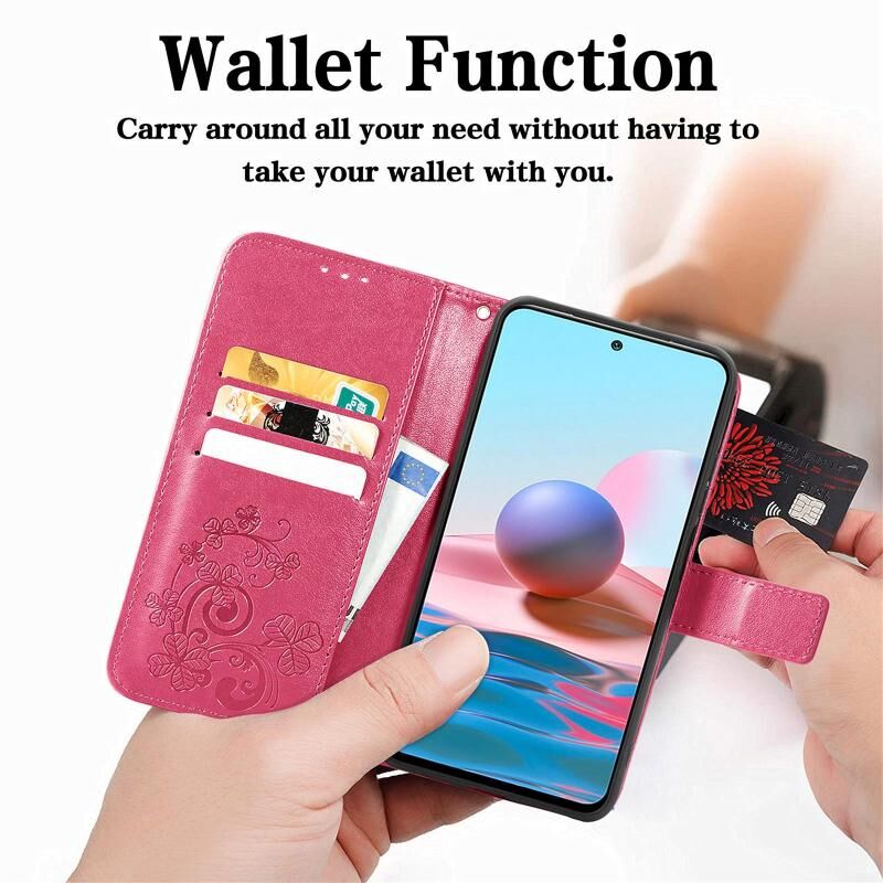 Για Xiaomi Redmi Note 10 5G Θήκη Προστασίας Κινητού Δέρμα με Κούμπωμα Τριφυλλιού, Λουράκι, Θήκη Καρτών, Πορτοφόλι & Λειτουργία Στήριξης (Ματζέντα)