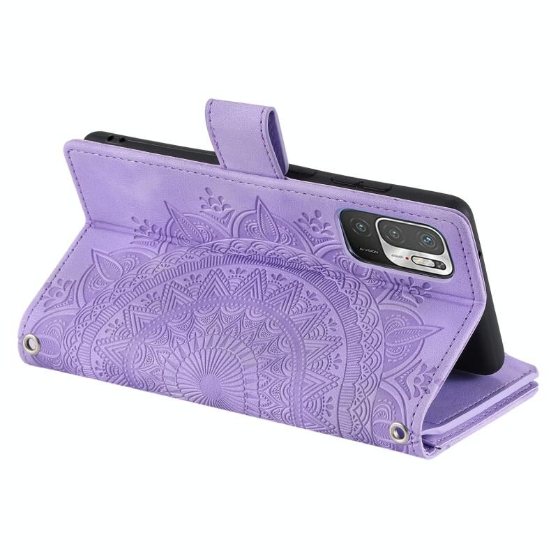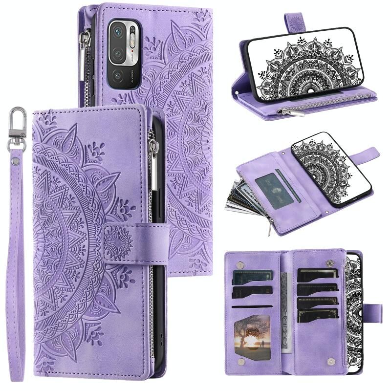 Για Xiaomi Redmi Note 10 5G Multi-Card Totem φερμουάρ δερμάτινη θήκη τηλεφώνου (Μωβ)