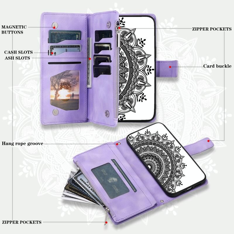 5. Πρακτική λειτουργία θήκης καρτών: Η υποδοχή κάρτας και η τσέπη πορτοφολιού με φερμουάρ και η θήκη μετρητών μπορούν να αποθηκεύσουν τις πιστωτικές σας κάρτες, τα μετρητά ή τα μικρά χαρτονομίσματα που χρειάζεστε καθημερινά.