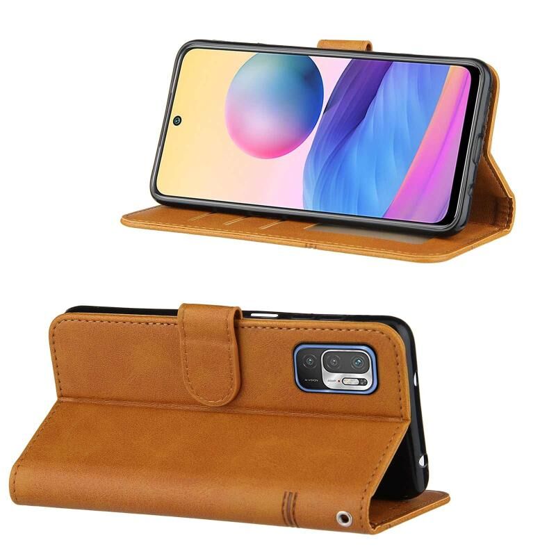 Για Xiaomi Redmi Σημείωση 10 5G/Note 10T/Poco M3 Pro 5G ραφή μοσχάρι υφή Πόρπη δερμάτινη θήκη τηλεφώνου (Κίτρινο)