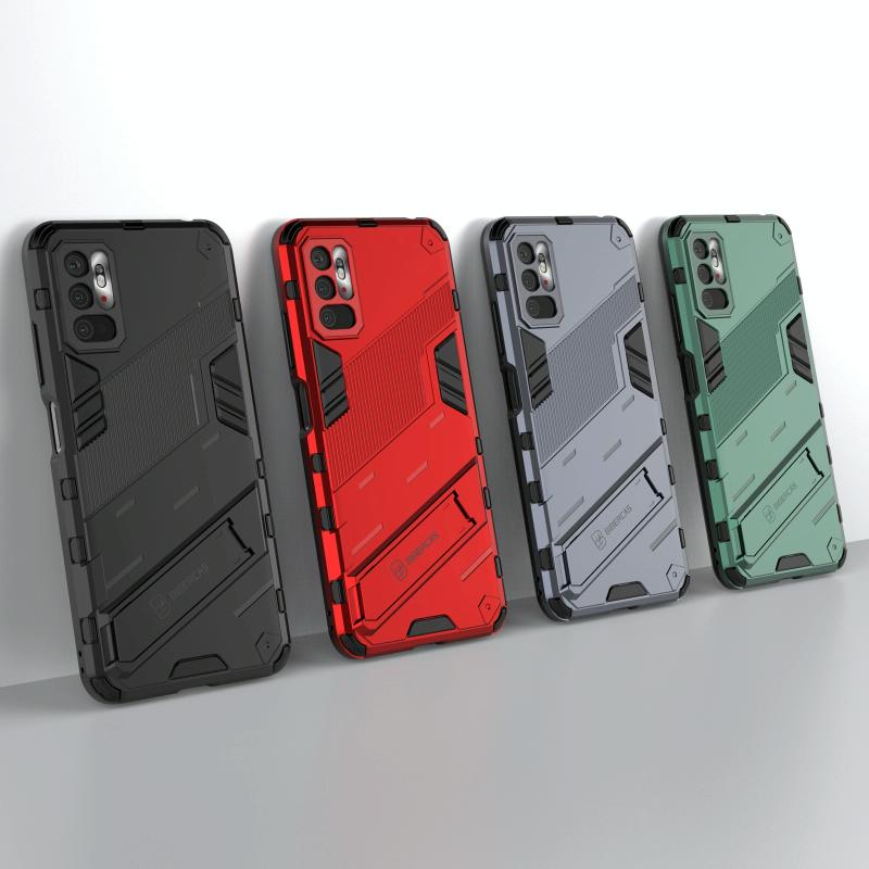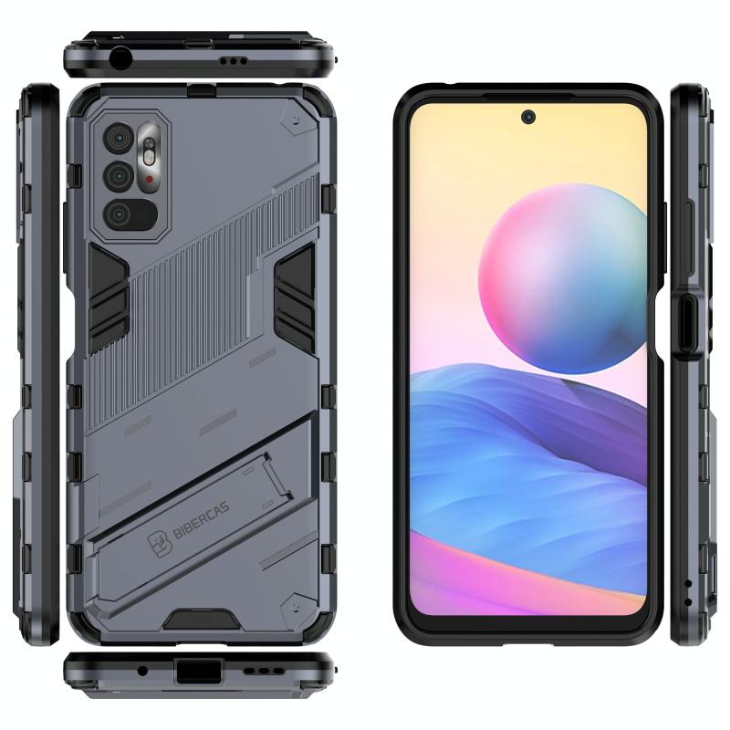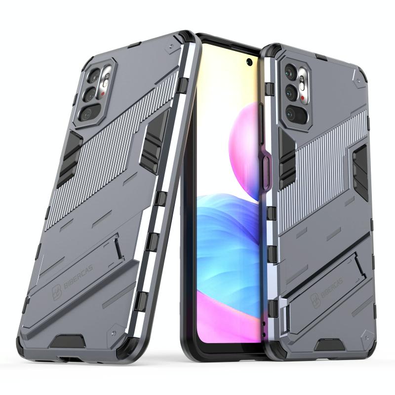 Για Xiaomi Redmi Note 10 5G Punk Armor 2 σε 1 θήκη PC + TPU ανθεκτική στις κρούσεις με αόρατη βάση στήριξης (Γκρι)