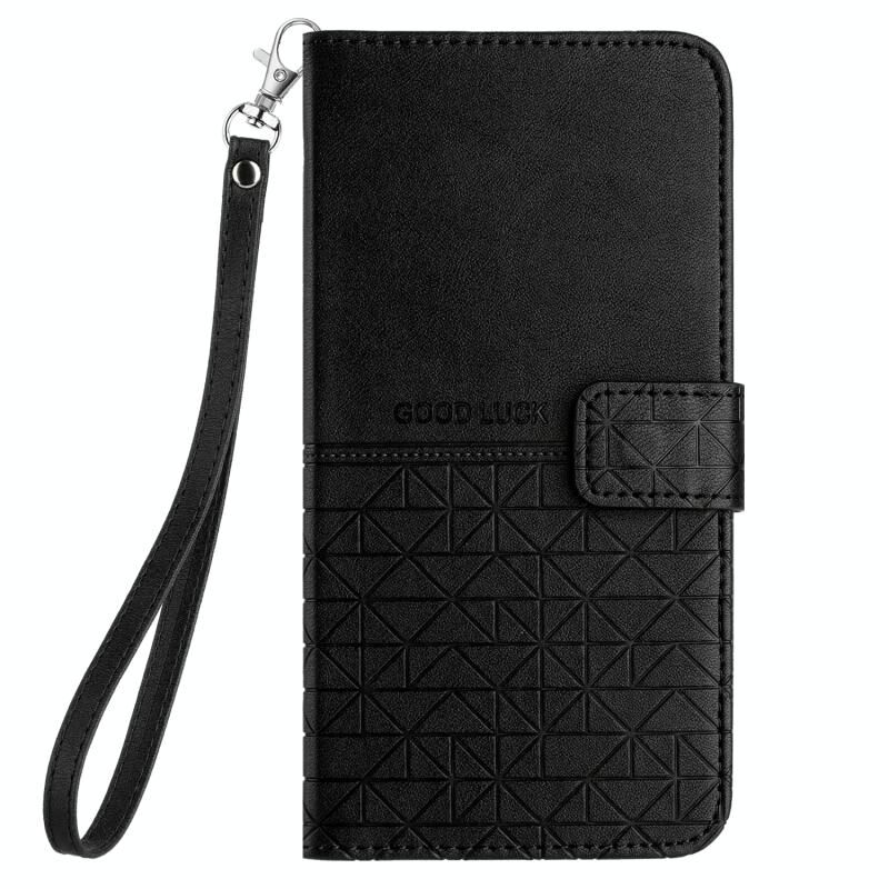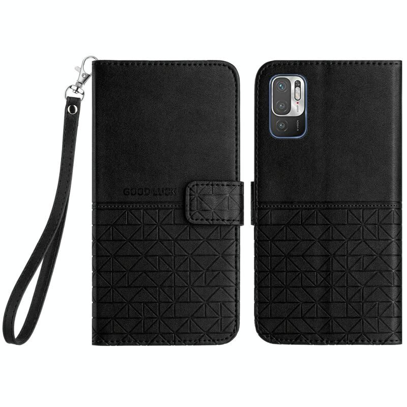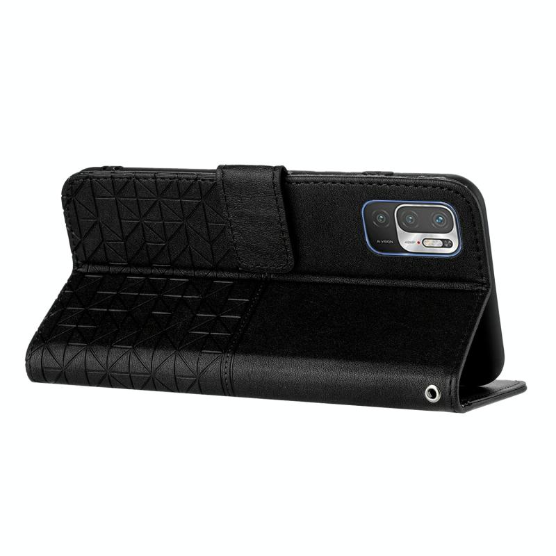 Θήκη δερμάτινη με κορδόνι για Xiaomi Redmi Note 10 5G - Ρομβικό σχέδιο (Μαύρο)