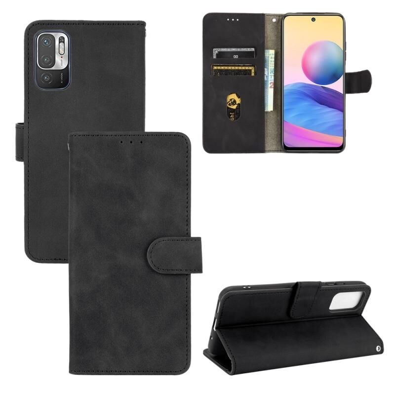 Για Xiaomi Redmi Note 10 5G Solid Color Skin Feel μαγνητική πόρπη οριζόντια Flip μοσχάρι υφή PU δέρμα υπόθεση με κάτοχο & υποδοχές καρτών & πορτοφόλι (μαύρο)