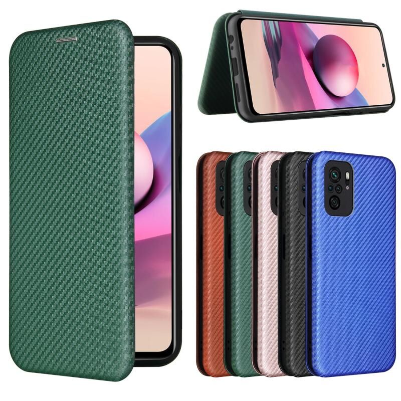 Για Xiaomi Redmi Σημείωση 10 Carbon Fiber υφή οριζόντια Flip TPU + PC + PU δέρμα υπόθεση με υποδοχή κάρτας (πράσινο)
