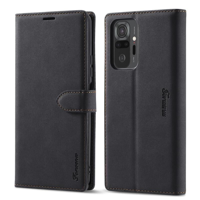 Για Xiaomi Redmi Note 10 Forwenw F1 Series Matte Strong Magnetism Horizontal Flip Leather Case with Holder & Card Slots & Wallet & Photo Frame (Black) (Forwenw)
