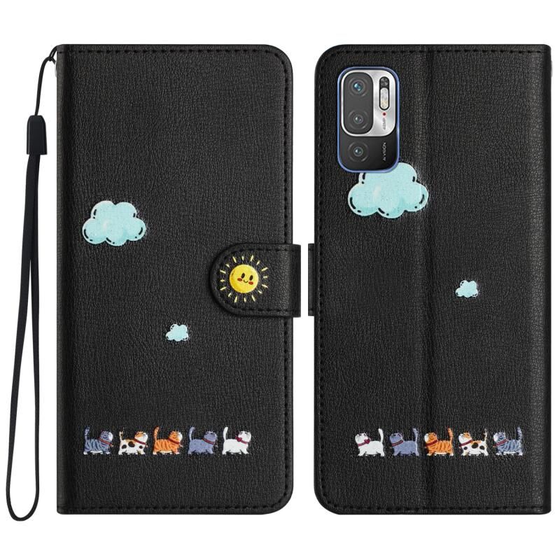 Θήκη τηλεφώνου από δέρμα με σχέδια χαριτωμένων γατών για Xiaomi Blackmi Note 10 JE (Κόκκινο)