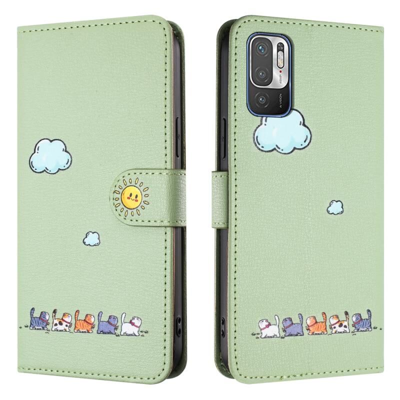 Θήκη τηλεφώνου από δέρμα με σχέδια χαριτωμένων γατών για Xiaomi Greenmi Note 10 JE (Κόκκινο)