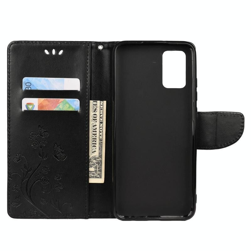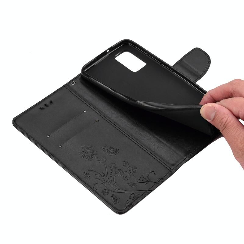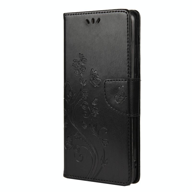 Για Xiaomi Redmi Note 10 / Note 10s Θήκη Δέρματος Οριζόντιας Αναδίπλωσης με Σχέδιο Πεταλούδας Λουλουδιών με Στήριξη & Θήκες Καρτών & Πορτοφόλι (Μαύρο)