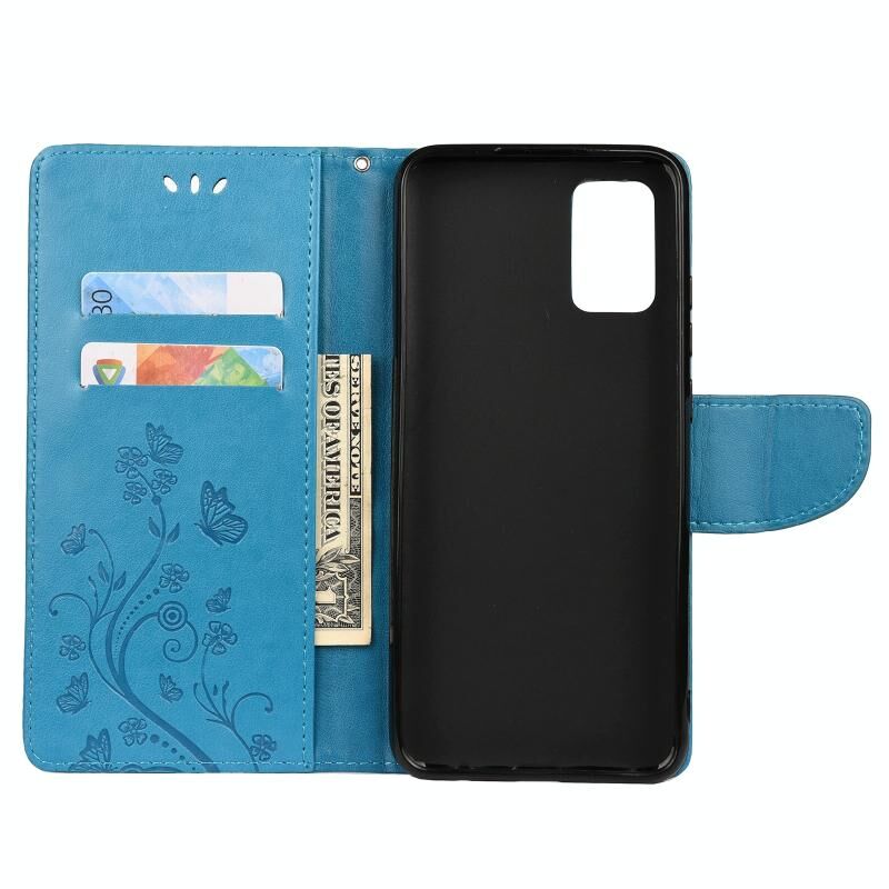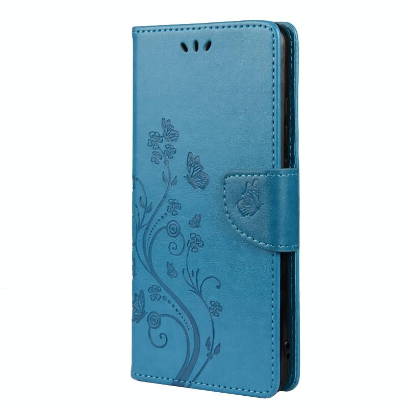 Για Xiaomi Redmi Note 10 / Note 10s Θήκη Δέρματος Οριζόντιας Αναδίπλωσης με Σχέδιο Πεταλούδας Λουλουδιών με Στήριξη & Θήκες Καρτών & Πορτοφόλι (Μπλε)