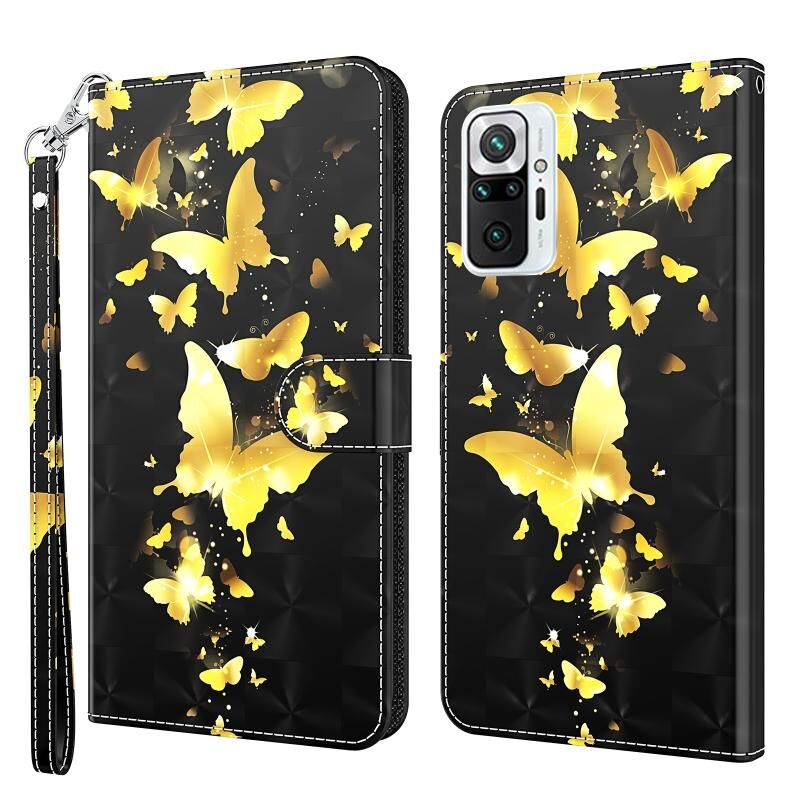 Θήκη κινητού τηλεφώνου για Xiaomi Redmi Note 10 Pro / 10 Pro Max, 3D ζωγραφισμένο σχέδιο, TPU + Δερμάτινη PU (Χρυσή Πεταλούδα)